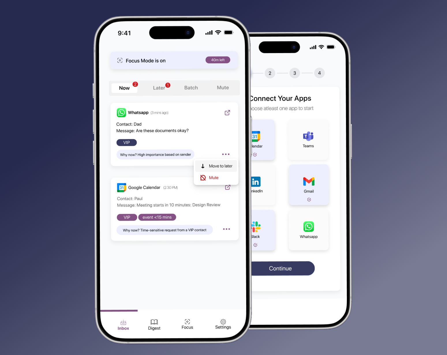 An AI-powered notification experience that filters noise, surfaces what matters, and restores focus.